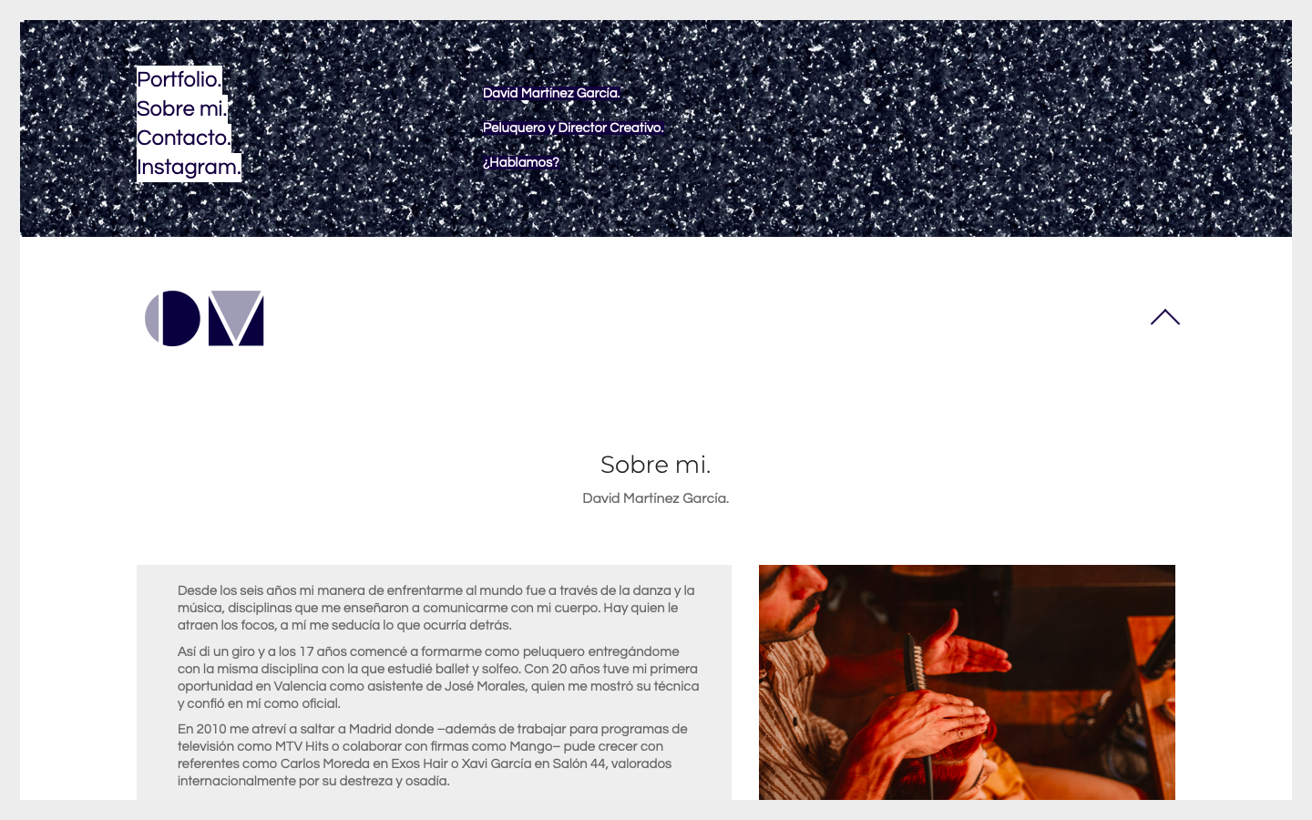 David Martínez García is a hair and makeup artist based in Madrid, Spain. I wanted to create a clear, fresh logo and portfolio website for him that somehow mirrored his profession. I took two simple shapes and cut them up to make them into different shapes, or in the case his initials. 2017-present.